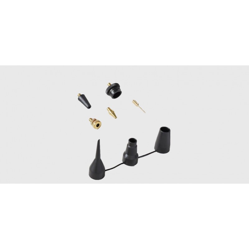 8 tips for various uses: tires, balloons, mattresses, boats, inflatable pools - Tips: Needle - bicycle tires - fine nozzle - large round - medium round - ball - buoy - inflatable mattress