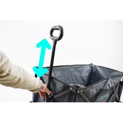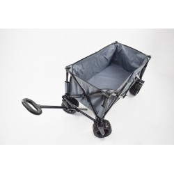 Foldable beach cart, load surface (LxWxH) 80x44x38cm. Although versatile, it can also be used on the beach thanks to its large wheels. Sturdy steel structure, fully foldable for storage.