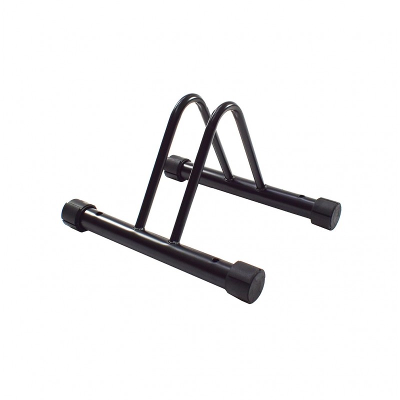 Black metal rack for 1 bike, provides stable support for your bike. For tires up to 2.5" diameter. Fits all wheel sizes from 16 to 29 inches. It can also be fixed to the ground thanks to its mounting holes. Dimension (W*L*H): 37*31*23 cm