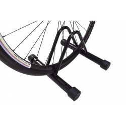 For tires up to 2.5 inches in diameter. Fits all wheel sizes from 16 to 29 inches. It can also be fixed to the ground thanks to its mounting holes.