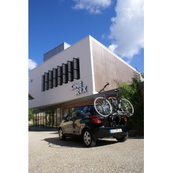 El PILOT, portabicicletas de estilo plataforma que se adapta a la mayoría de los coches sin necesidad de un sistema de remolque. Ajuste 2 bicicletas sin que se muevan o se toquen entre sí, lo que evita los arañazos en las bicicletas.