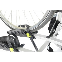 Los soportes de rueda pueden acomodar todos los ejes, incluso las bicicletas infantiles muy pequeñas.Las correas permiten una fijación segura de las ruedas y las almohadillas protegen las llantas.