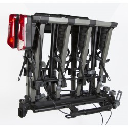 Adaptador 7/13 pines (7... à partir de 14,90 € Vista rápida Kit de extensión de correa... à partir de 39,90 € Vista rápida El Eazzy 4 se adapta a todo tipo de bolas de enganche de 50 mm (regular y cuello de cisne). Puede transportar hasta 4 bicicletas, adultos o niños con un peso máximo de 20 kg por bicicleta. Las correas de trinquete de liberación rápida y el diseño único de la cuna permiten cargar las bicicletas de forma rápida y sencilla. Su tratamiento anticorrosión y sus soldaduras de calidad le garantizan una vida útil excepcional. Entregado completamente montado, solo tendrá que fijar la iluminación para utilizar inmediatamente su portabicicletas. Especificaciones técnicas Número MÁXIMO de bicicletas: 4Comple con la bola de remolque: síCompatible cuello de señal / bola desmontable: síDimensiones (Ancho x profundidad): 113 x 92cm(medida del centro del soporte de la bola de enganche enganche en el borde exterior del soporte de la matrícula).Dimensiones plegado: 25 x 92cmPeso: 19.7 kgCarga MÁXIMA: 60kgPeso máximo por bicicleta: 20kgTamaño máximo bicicleta: acepta bicicletas de hasta 119 cm de distancia entre ejes en 29"La carga máxima permitida que puede transportar también está determinada por el peso de la nariz de la barra de remolque; debe verificar que no supera este nivel antes de utilizar un portabicicletas montado en una bola de remolque.Requiere un espacio de 65 mm entre el centro de la bola de remolque y la parte trasera del vehículo. No permite la apertura del portón trasero para vehículos tipo furgoneta (VW transporter, Citroën berlingot, Peugeot partner, Renault master,...)