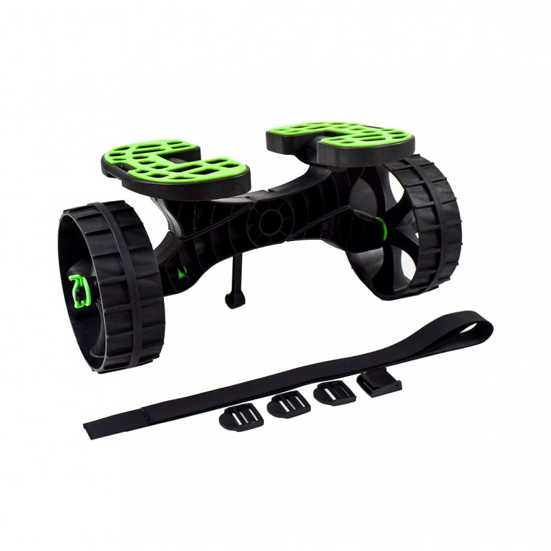 Carro de transporte para SUP, Kayak, windsurf, tablas... los dos soportes giratorios permiten adaptar el carro a la forma de la tabla, además son de goma antideslizante.El chasis reforzado es muy sólido (carga hasta 75Kg), las ruedas son extraíbles y el perfil permite moverse en todos los terrenos, incluida la arena. Está equipado con un caballete para mantener el carro horizontal durante la carga. Completamente de plástico, no requiere mantenimiento y es resistente al agua de mar.