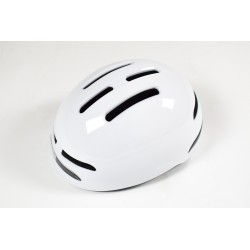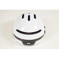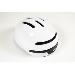 Casque urbain taille M-L avec fonctions intelligentes CLIGNOTANT et FREINAGE. Grâce à sa puce ST32 made in US et son gyroscope allemand BOSCH, ces fonctions sont assurées automatiquement et sans contrôle à distance. 48 LED arrière. très léger 360g, waterproof IP55. Autonomie 8 heures, rechargeable via câble USB fourni, piles interchangeables en fin de vie. Couleur blanc.