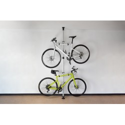 Support de rangement télescopique pour 2 vélos jusqu'à 30 Kg. Se monte en quelques minutes, la hauteur peut s'adapter selon la hauteur du plafond de 170 à 400 cm. Les bras de support sont réglables en hauteur pivotent à 360° et les crochets sont ajustables. Gain de place assuré !