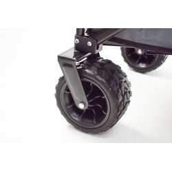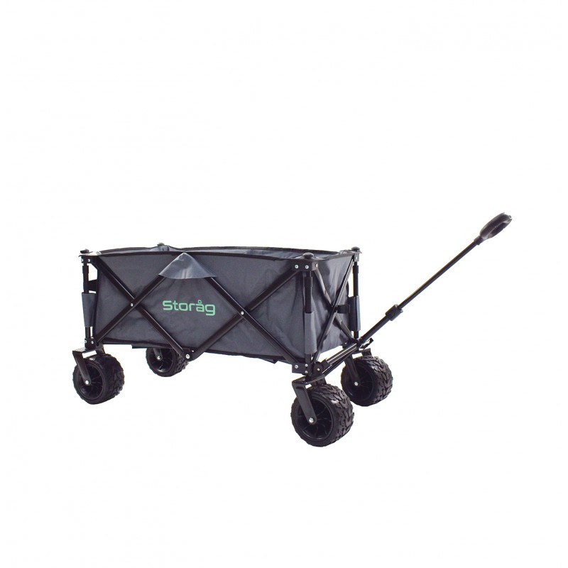 Opvouwbare strandkar, laadoppervlak (LxBxH) 80x44x38cm. Hoewel veelzijdig, kan hij ook op het strand gebruikt worden dankzij de grote wielen. Stevig stalen frame, volledig opvouwbaar voor opslag.